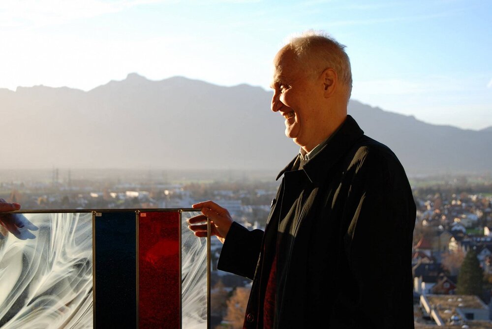 David Reed in Rankweil mit Probefarbgläsern